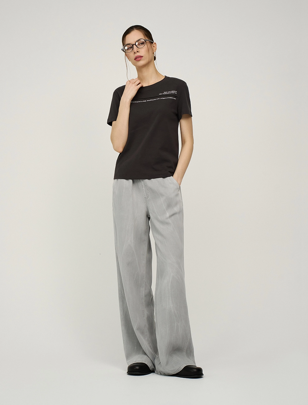 Брюки-палаццо прямого силуэта с классической посадка на талии. По передней части изделия застежка на гульфик и пуговицу, а так же вертикальные рельефные швы. По поясу эластичная резинка. В боковом шве классические карманы, на заднем полотнище два декоративных кармана в рамку. В составе ткани 100% лен. Представлены в белом цвете.